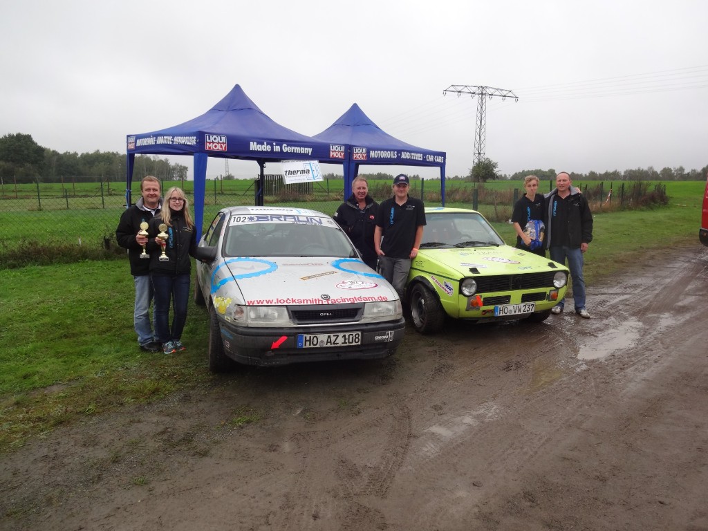 Unzählige Probefahrten in der Vergangenheit und die ein oder andere Schrauber- Session am Golf 1 (H13) in der privaten Werkstatt haben bereits in der Vergangenheit die Lust am rallyefahren geweckt. Die Rallye Bad Schmiedeberg ist beim Locksmith Racing Team eine feste Größe und so war es naheliegend die Jungfernfahrt nach Sachsen- Anhalt zu verlegen. Lizenz, Anzug, Schuhe, Helm alles musste bestellt und organisiert werden, ach ja, ein kleiner Beifahrerlehrgang wäre auch nicht schlecht. Ist halt doch was anderes als im normalen Strassenverkehr ein "Rechts ist Frei". Als alles unter Dach und Fach war, d.h. bei einer Rallye mehr oder weniger, war der Termin auch schon da, also aufladen und ab nach Bad Schmiedeberg, Vater und Sohn und inkl. Stau ca. 3 Stunden Benzingespräche. Nachdem der Freitag mit Papierabnahme und Technischer Abnahme die ersten Eindrücke hinterlassen hat (Zitat eines 14-jährigen: Mensch is des Geil) ging es am Samstag dann richtig los. Abfahren mit Abfahrbuch und Roadbook, Aufschrieb machen, Abfahrkarte stempeln "Mensch ist das viel Zeug" und den Zeitplan auch noch im Auge behalten! Startzeit 13:12 Uhr, erste Verbindungsetappe und Start WP 1, die Atmung wurde schneller zumindest auf der rechten Seite in Fahrtrichtung. Nach der ersten Zieleinfahrt war der Respekt schon etwas Größer und die Gefühle ganz schön gemischt, also ab zur WP 2, Zieldurchfahrt am Rundkurs, ab jetzt war alles klar, Zitat Marvin: Komm Vater hau drauf wir müssen weiter. Bei der ersten Schotterprüfung musste der Frischling dann feststellen wie es ist, wenn man den Finger nicht fest genug aufs Gebetbuch drückt, Klare Ansage: Vater ich bin raus und ohne bzw. zu wenigen Orientierungspunkten kommt man dann auch nicht wieder rein. Im Anschluss WP 4 und die 2. Schleife mit WP 5 - 8. Unterm Strich 4. in der H13 und 50. in der Gesamtwertung. Der Vater hätte bei seinem ersten Rallyeeinsatz 1989 von so einem Ergebnis geträumt. Bei der Siegerehrung durfte der Neueinsteiger dann einen Sack Nudeln (Kohlenhydrate sind unglaublich wichtig) als Ehrenpreis entgegen nehmen.
