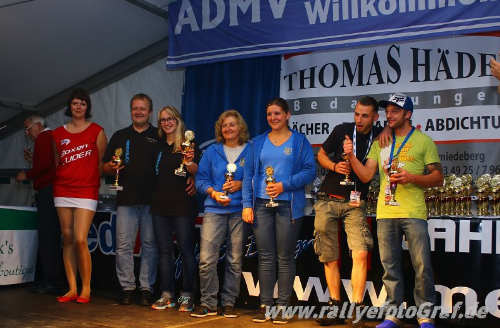WP5 und WP6 verliefen bis auch weitere kleine Schikanentreffer fehlerfrei und schnell. Auf WP7 fuhr sich ein Suzuki, der durch falsches Stempeln nun vor Klaus und Mareen startete, auf dem Schotterstück fest und blockierte die Straße. Das Team musste stoppen und konnte erst nach der Bergung des Suzuki`s weiterfahren. WP8 wurde auf Grund des Unfalls eines BMW`s anuliert. Im Ziel angekommen studierte das Team die Zeiten und war trotz der errechneten Zeit auf WP7 mehr als glücklich, da die Klasse mit dem knappen Vorsprung von 0,4 Sekunden gewonnen wurde. Das Team hätte das nie gedacht und freute sich umso mehr über den unerwarteten Klassensieg und genoss die tolle Siegerehrung.
