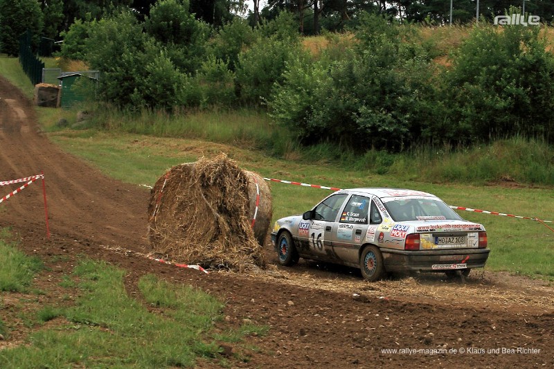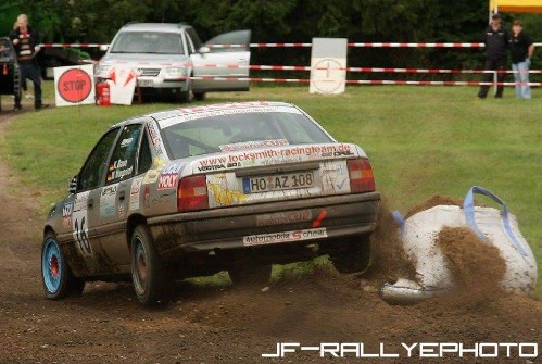 Nach der ersten Runde war wieder ein Volvo vor ihnen, der auch gleich versuchte Platz für den Vectra zu machen. Nach der zweiten Runde lag in der Spitzkehre ein großer Rundballen, den einer der Volvos berührt hatte und so auf die Idealstrecke rollte.