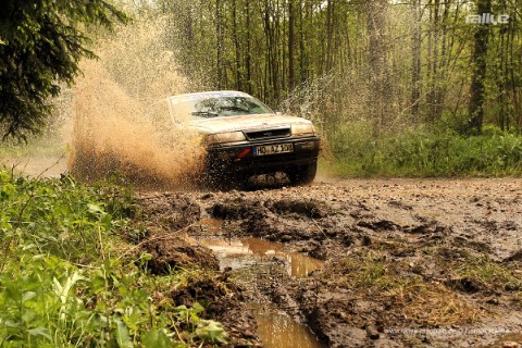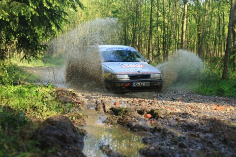 Das Team Klaus Braun und Mareen Morgenroth wünschte sich im Vorfeld Regen um nicht zuletzt den zu erwartenden Vorteil durch den Allradantrib und die neuen Avon Schotterreifen, die bei Regen sehr gut sein sollen, voll ausspielen zu können. Das der Wettergott es dieses Mal zu gut meinte und den Wunsch mit viel zu viel Regen erfüllte, war Beiden jedoch nicht bewusst. In der Umgebung von Aldersbach regnete es bereits am Donnerstag 60 Liter pro m² und am Freitag schüttete es ebenfalls wie aus Eimern. Da die Wertungsprüfungen überwiegend im Wald auf Naturboden sind, wussten alle sofort, dass es eine sehr schwierige Rallye wird. Die technische Abnahme und das Anbringen der Veranstalter-Aufkleber war somit schon eine extrem nasse Angelegenheit.