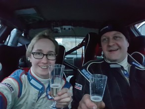 Das Kühlwasser, welches durch die Abmontage des Schlauchs vom Ausgleichsbehälterschlauch verloren ging wurde mit den 2 Flaschen Aktive-O2 Wasser, die zum Glück noch im Auto waren, aufgefüllt. Durch die Reparatur kam das Team 4 Minuten zu spät an die ZK wodurch sie 40 Sekunden Strafzeit bekamen. Bei der letzten und gleichzeitig längsten WP musste das Team auf Sicherheit fahren. Im Ziel angekommen gab es vom Veranstalter einen Sekt und der Schotter-Cup Chef Alfred Gorny erkundigte sich nach den Ereignissen und Eindrücken dieser schwierigen Rallye.